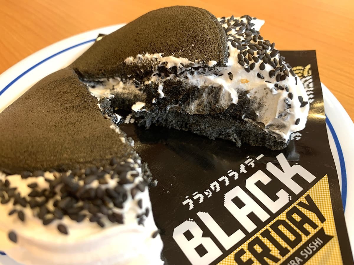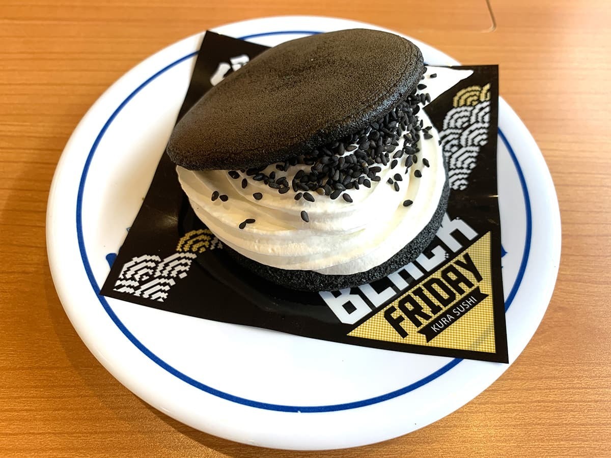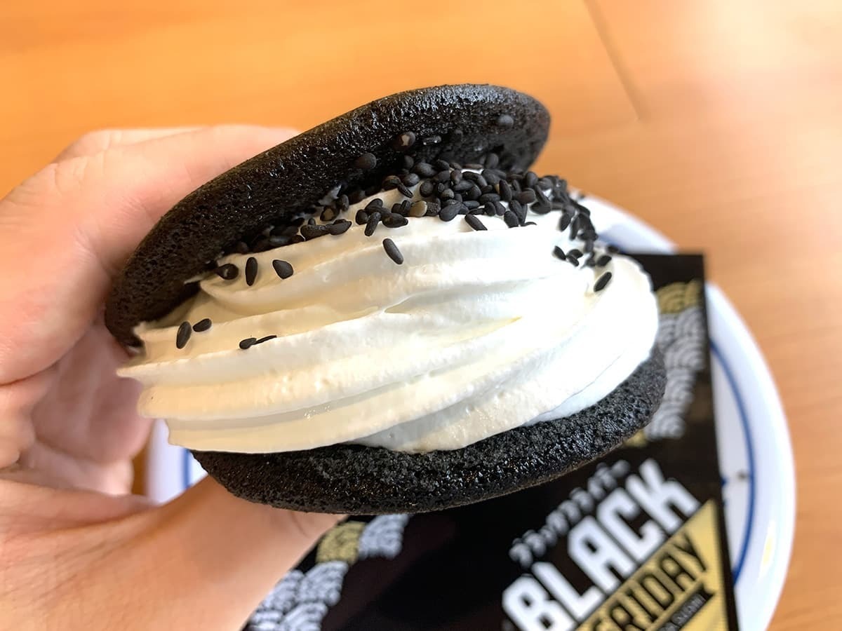 ブラックフライデーらしい黒色をベースにしたスイーツ。真っ黒などら焼き皮と、白色のホイップクリームとのコントラストも映える一品です。