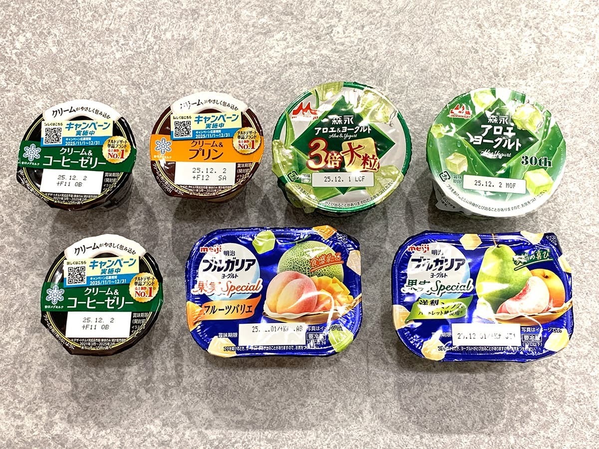 聞き馴染みのあるメーカーで安心感は抜群!フレーバーも多彩で、朝ごはんにもぴったりなフルーツヨーグルト、さっぱり系のアロエヨーグルト、子供・甘党の方にも嬉しいプリン、大人系のコーヒーゼリーなど、家族で取り合いになりそうなほどのラインナップです!