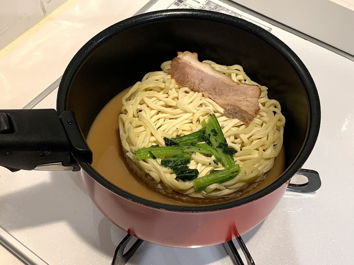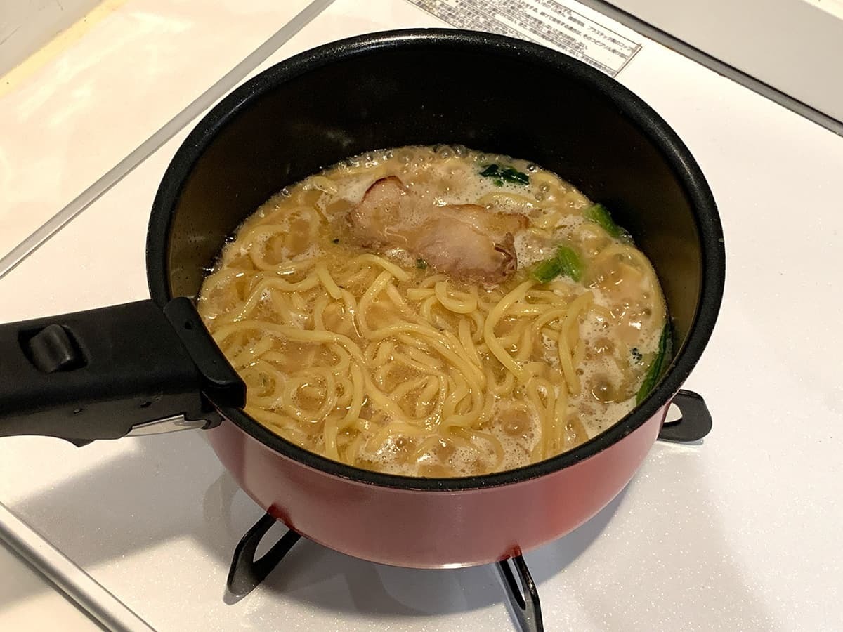 冷凍状態のまま加熱すると底のスープが徐々に溶け、十分なスープ量になりました!