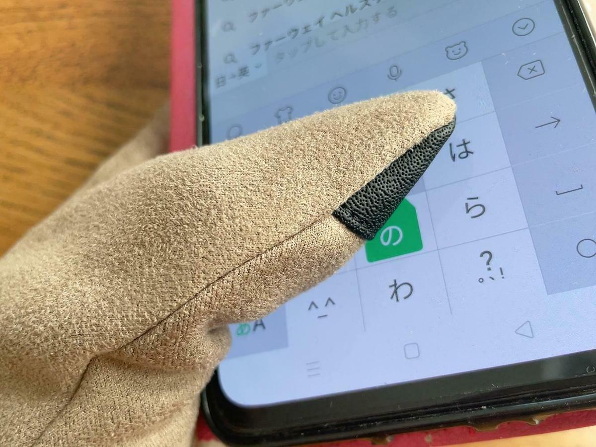 親指と人差し指には静電気軽減素材が使われていて、スマホ操作にも対応しているようです。