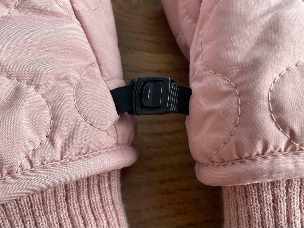また、この手袋には、左右をつなぐ黒いバックルがついています。