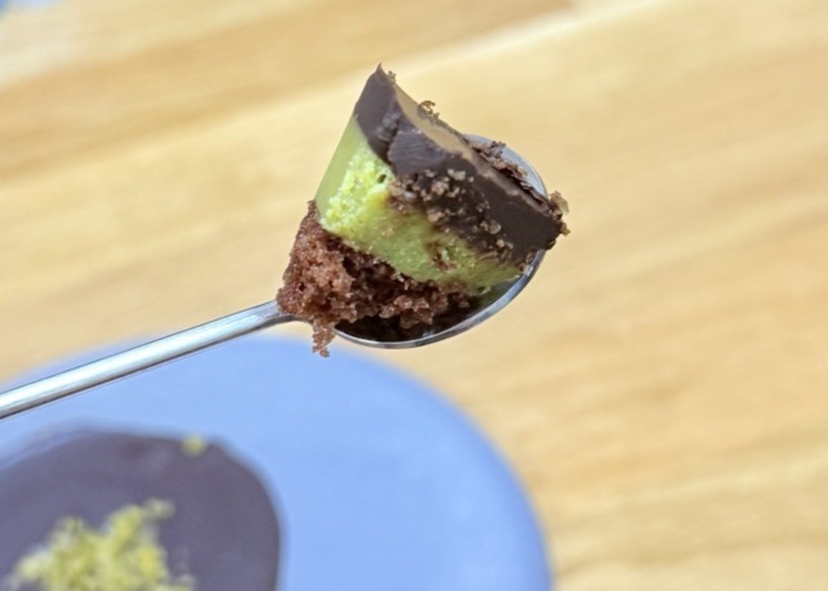 ピスタチオの風味は控えめで、チョコレートの“濃密さ”が主役かも。