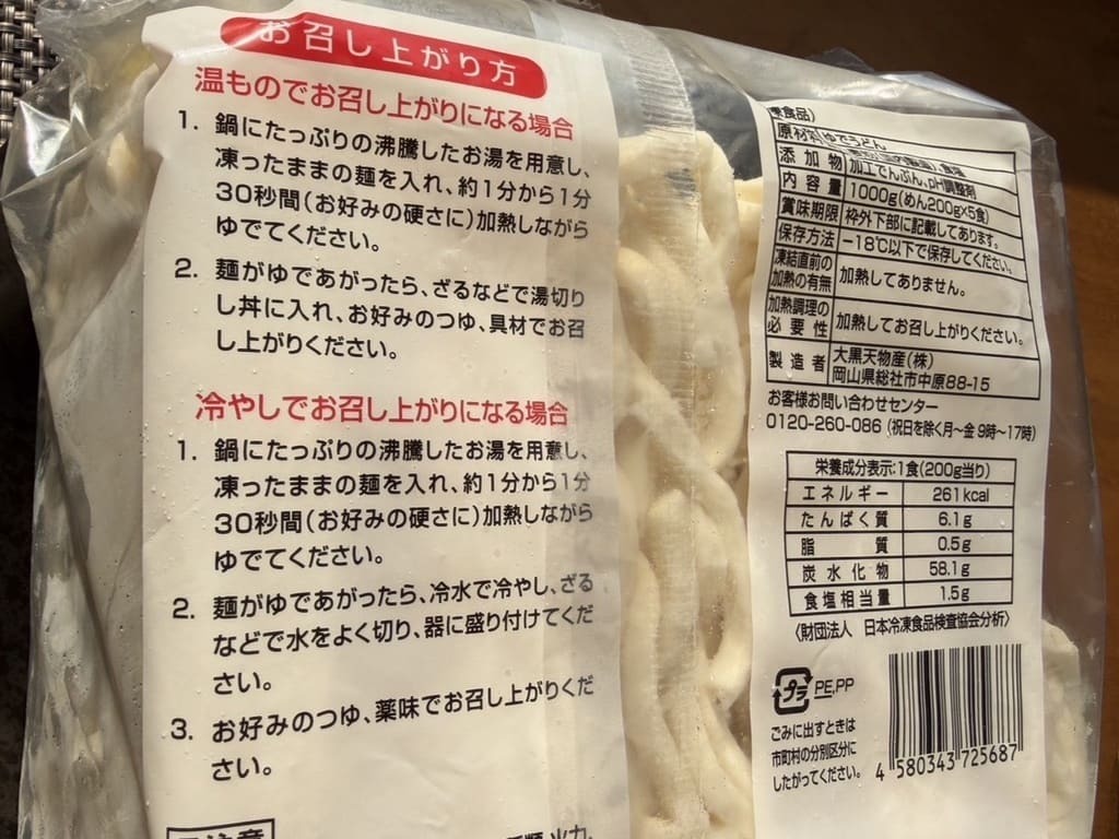 こちらがラ・ムーの冷凍讃岐うどん。