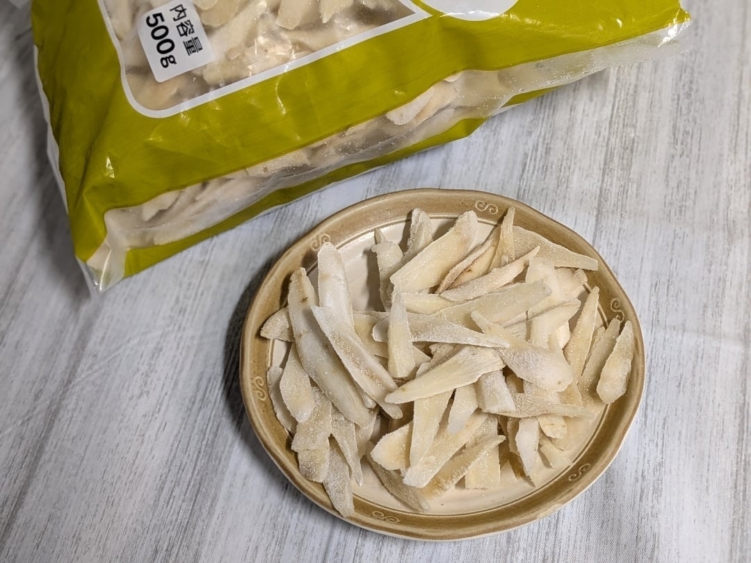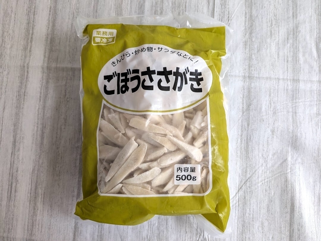 業務スーパーの冷凍野菜は、その安さに驚きます。 そして面倒なささがきになっているので、時短調理にはうってつけ!