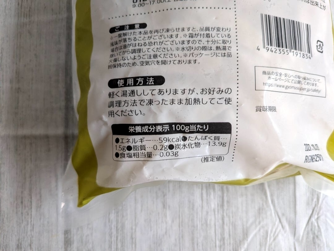 業務用・要冷凍と書かれていて、その容量はなんと500g!