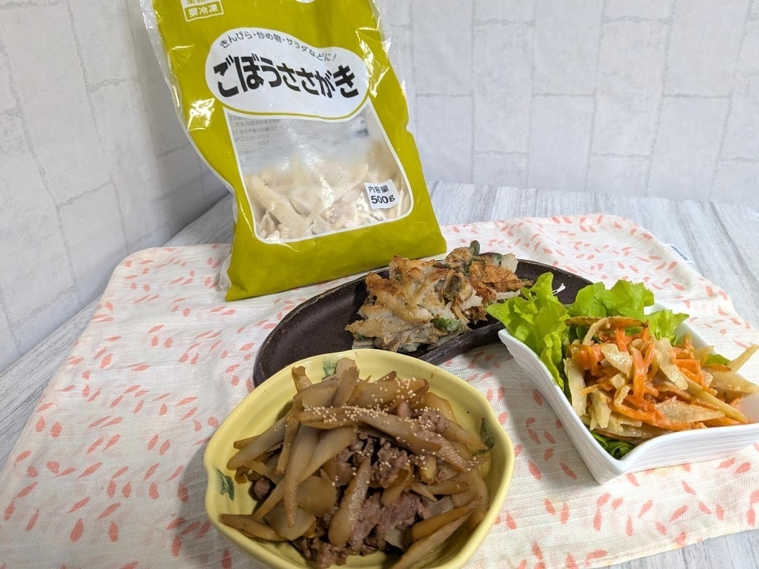 ごぼうの歯ごたえがしっかりと残っていて、冷凍野菜ですが、生の野菜と遜色のない食感でしたよ。
