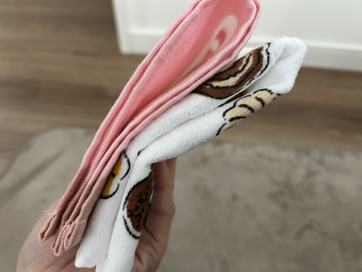 サイズは大きめですが、薄手なので外出時の手拭きに重宝しそう。