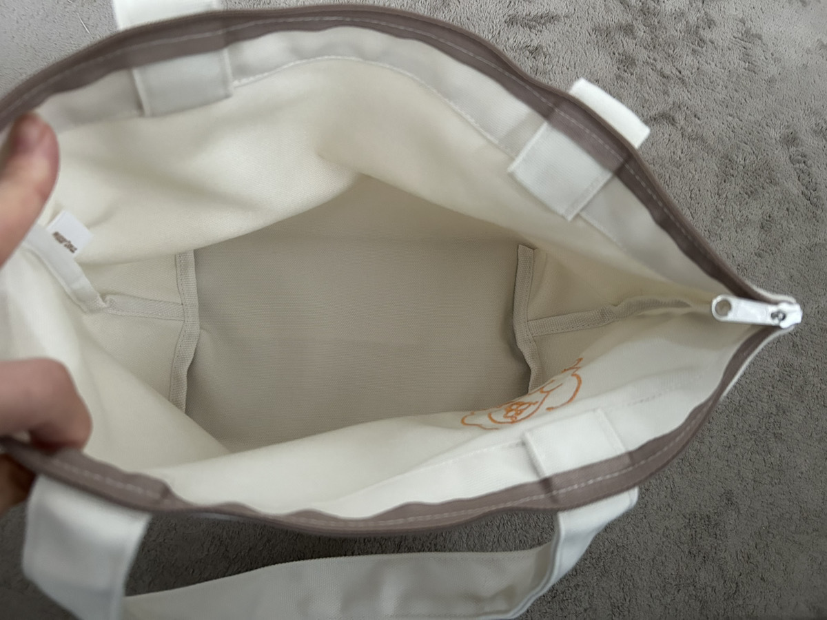 広めのマチが優秀で、お弁当箱はもちろん、ドーナツをテイクアウトした際の紙袋もそのままストンと収まるサイズ感。