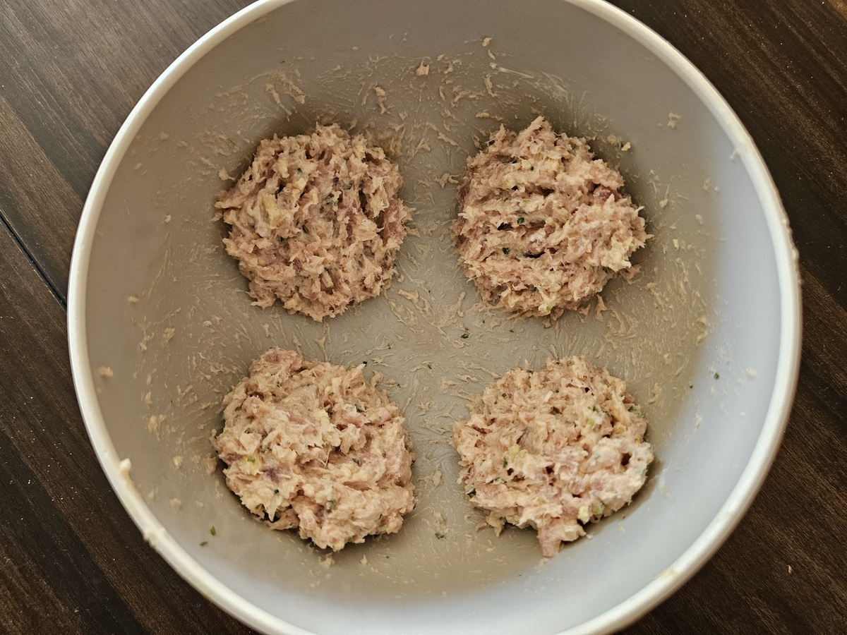 混ぜ合わせたものを四等分にしてハンバーグのように形を整えます。