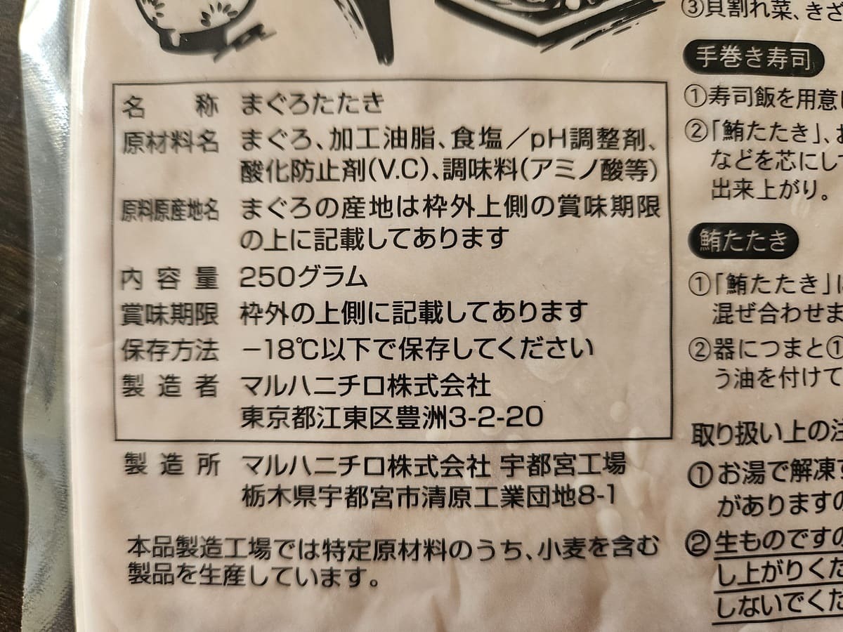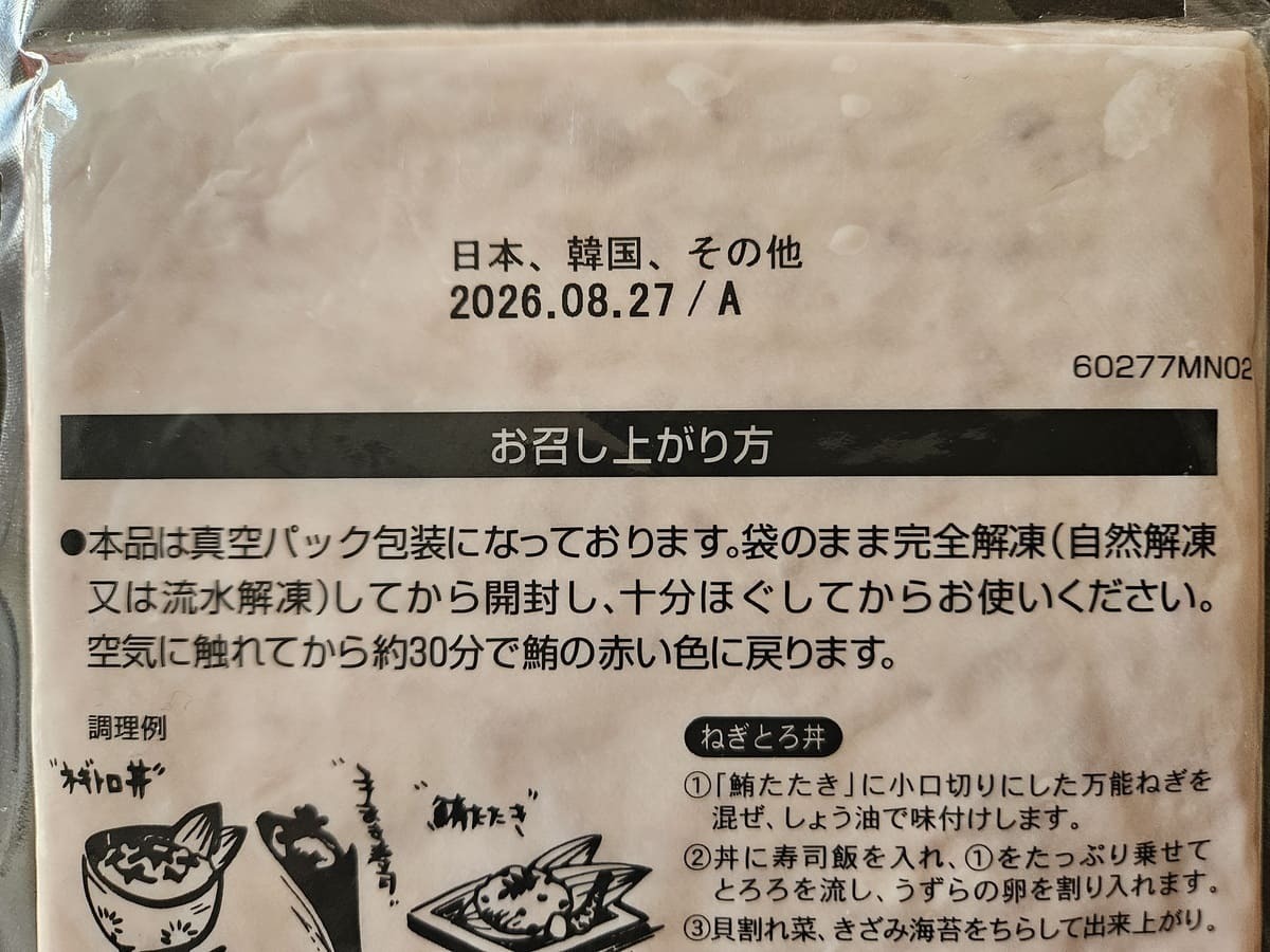【業務スーパー】『鮪たたき』が1袋250gの容量で税込624円!