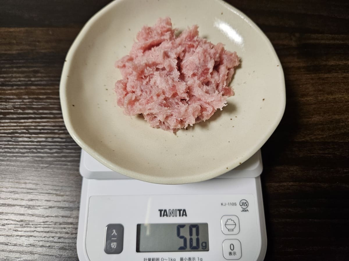 計量のときは少ないようにも思えましたが、鮪たたきを広げてみると50gでもご飯全体に行き渡る量でした!