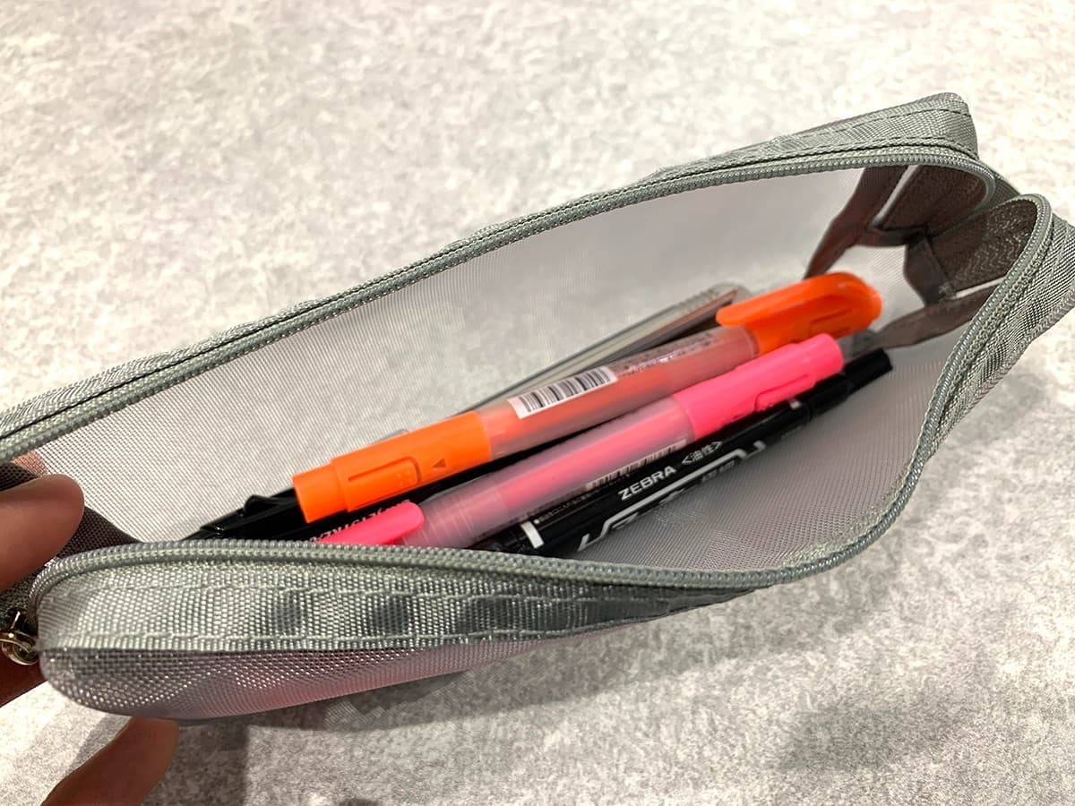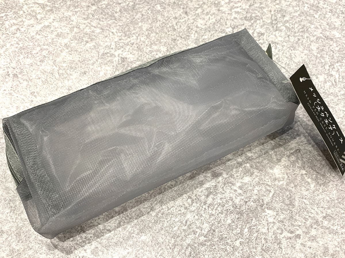 メッシュ素材で作られた筆箱で、グレーカラーが大人な印象を与えるアイテム。価格は110円(税込)で、コスパを最優先したい方におすすめです!
