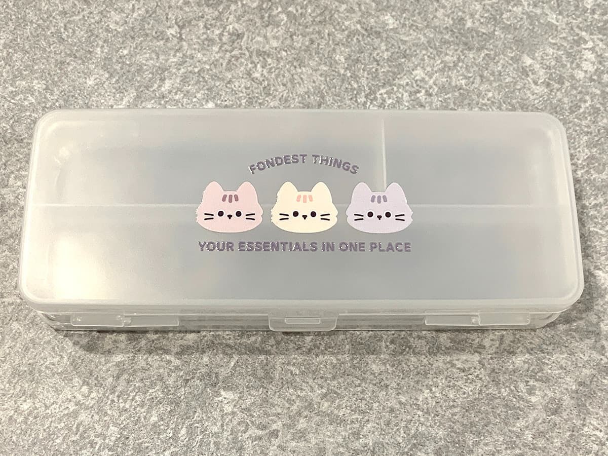 プラスチックのハードケースで、可愛いデザインも魅力的な「ペンケース(両面、ねこ)」をご紹介します。
