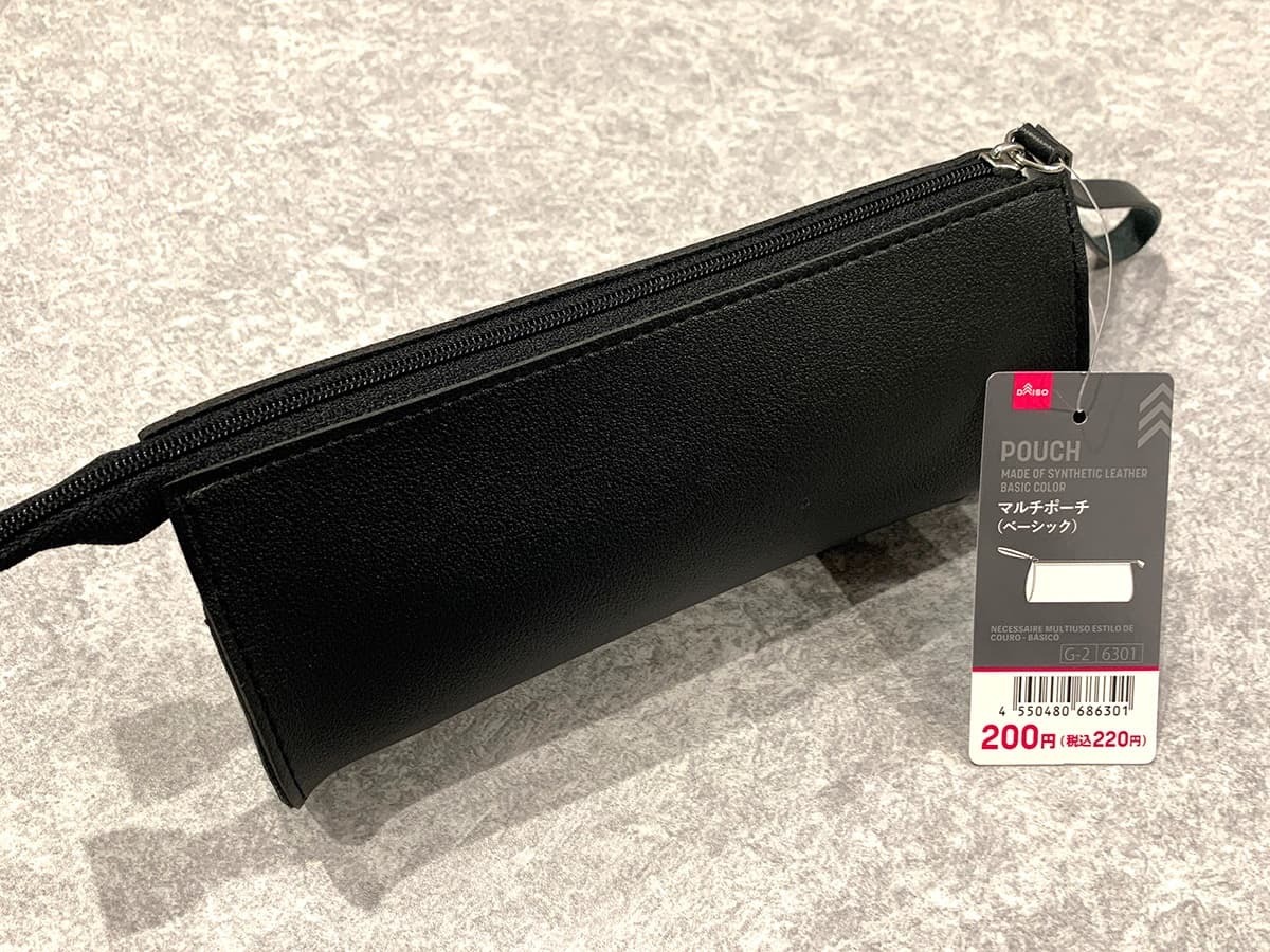220円(税込)の商品ですが、220円とは思えない高見えするデザインが特徴的な「レザー調マルチポーチ(ベーシック)」をご紹介します。