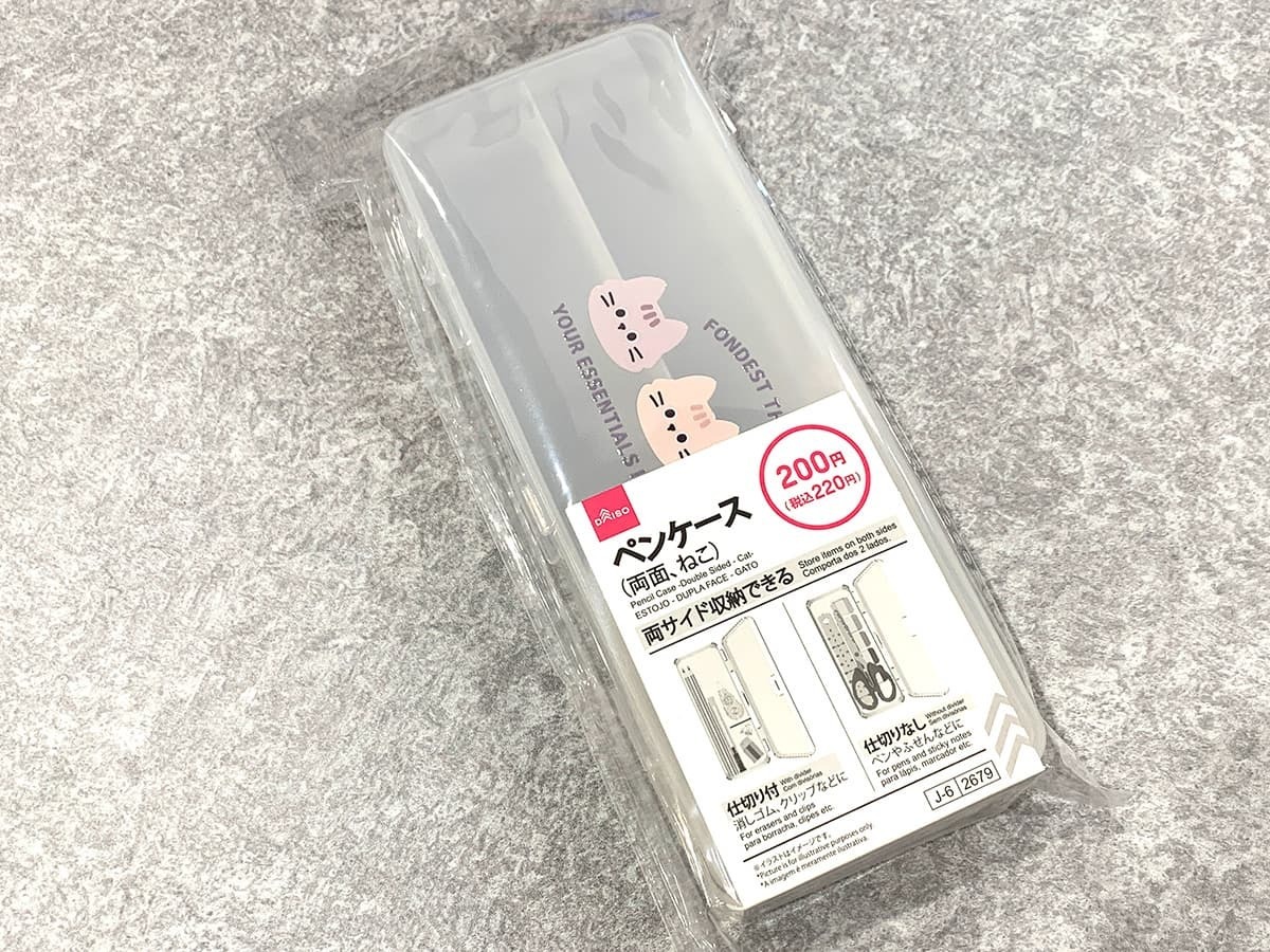 筆箱の表面には猫のイラストが3匹並んでおり、見ただけでテンションが上がるようなアイテム。価格は220円(税込)となっています。
