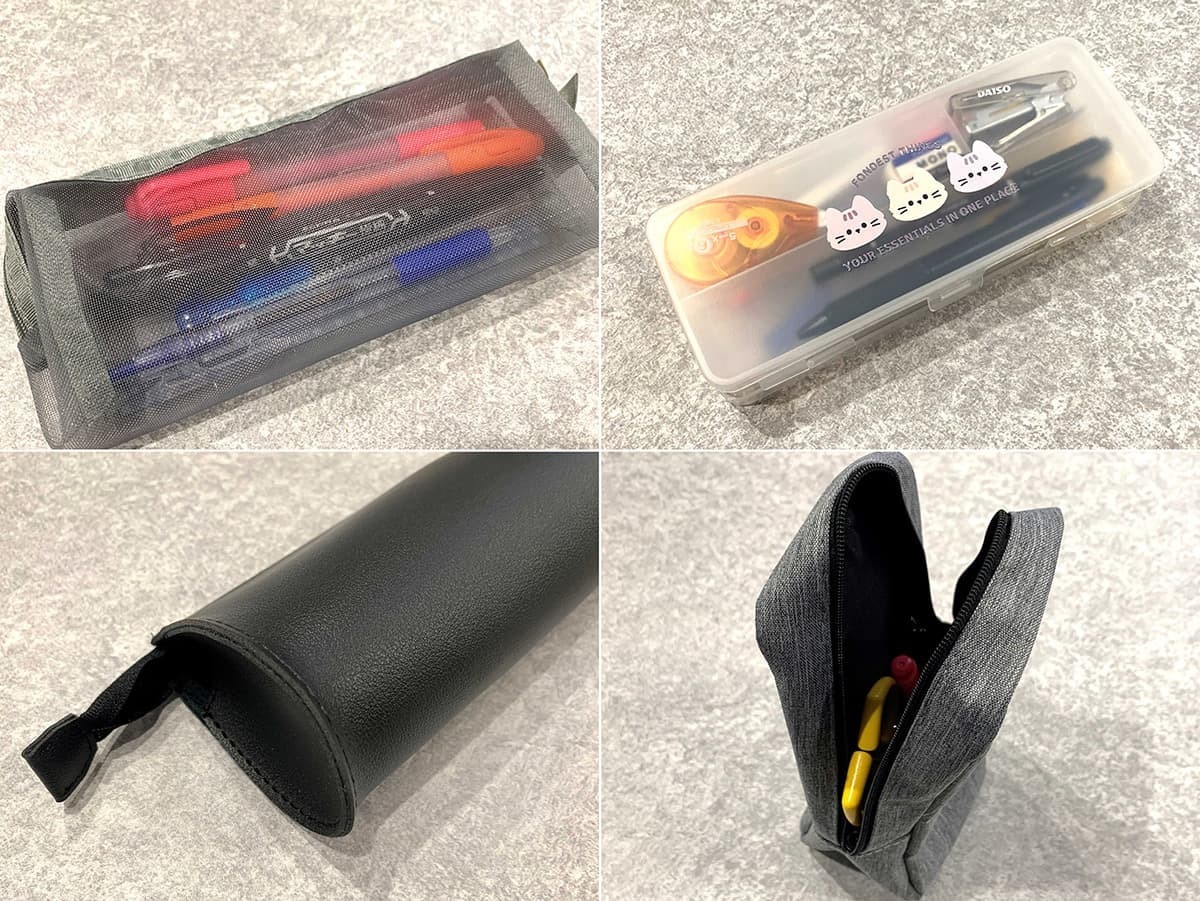 種類もさまざまで、クリアタイプ、メッシュタイプ、革タイプ、スタンドタイプ、ロールタイプなど多彩な筆箱が販売されていますよね。