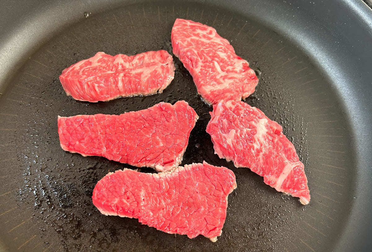 まずは強めの火加減で、お肉の両面をさっと炙るようにして火を通します。