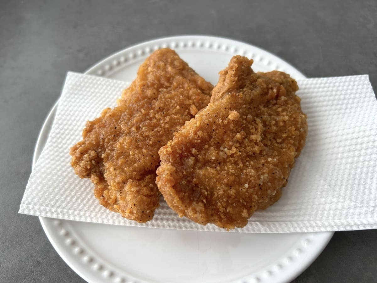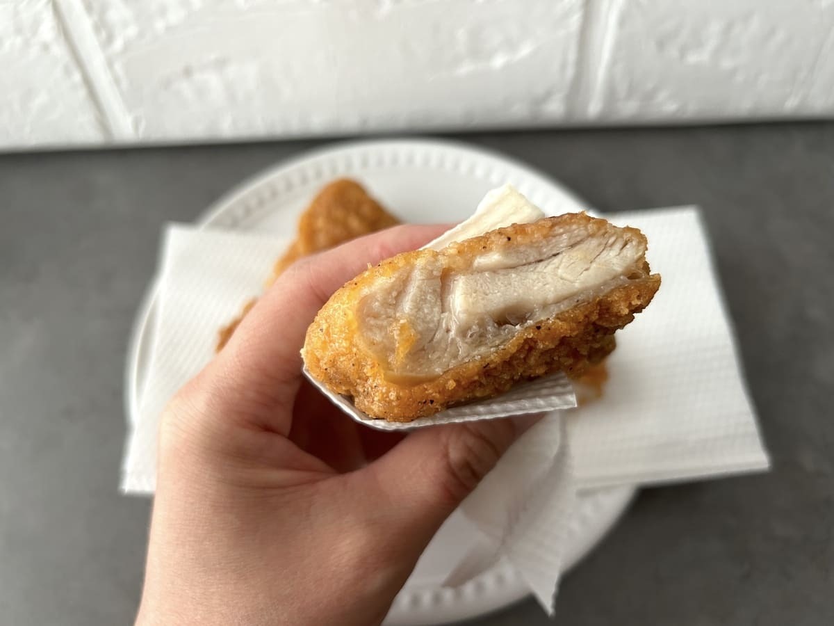 衣はサックサクの薄衣タイプで、お肉はふんわり柔らか。これなら子どもでも安心して食べられます。