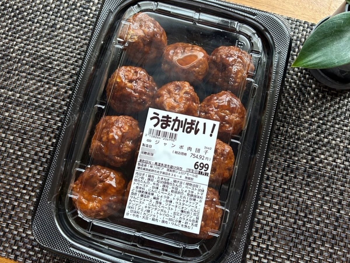 ドーンと大きな肉団子が12個!名前も見た目もインパクト絶大な「♾️(無限)ジャンボ肉団子」です。