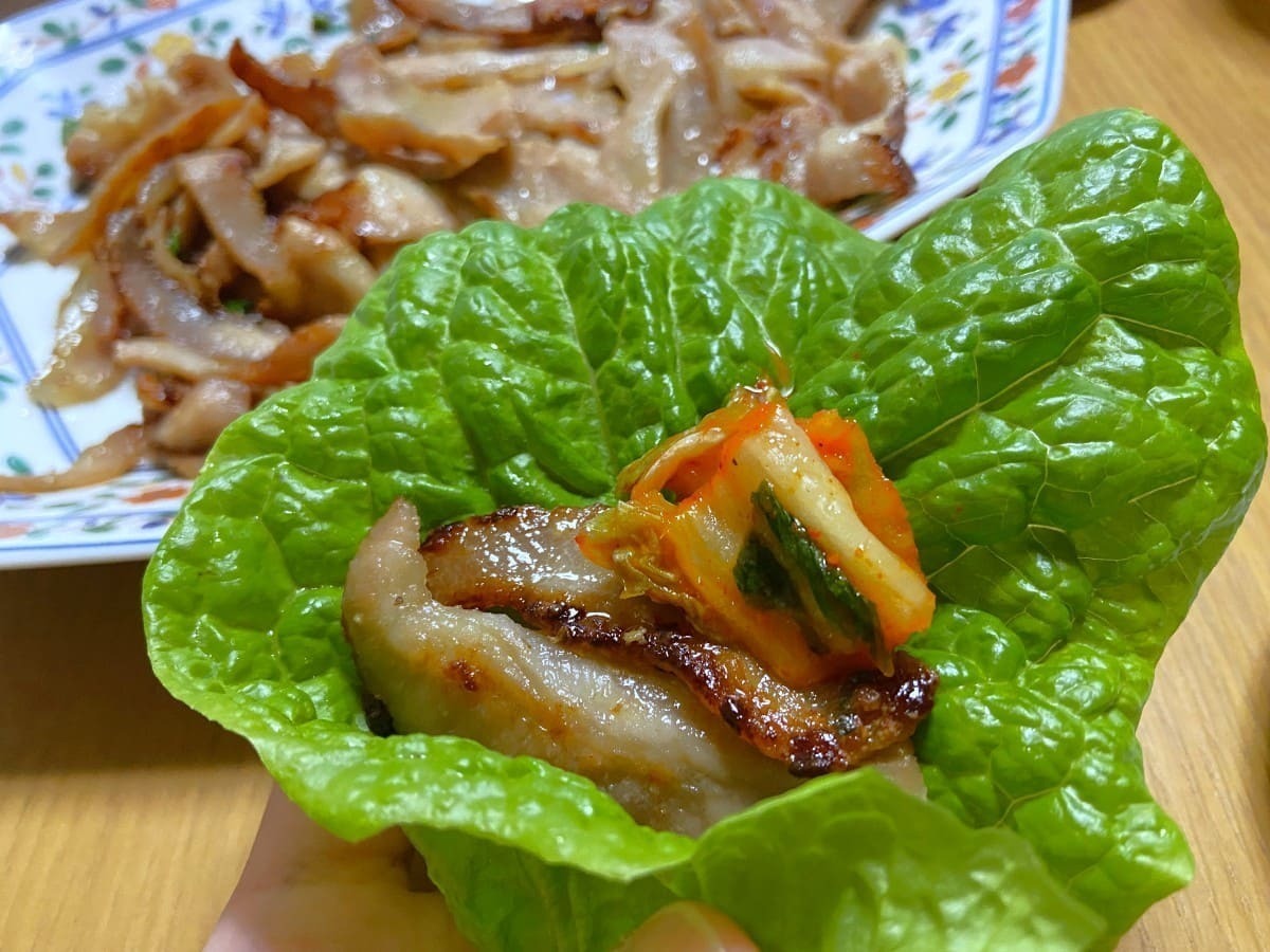 サンチュやレタスに包んで食べてみます!塩とニンニクの風味が絶品です!
