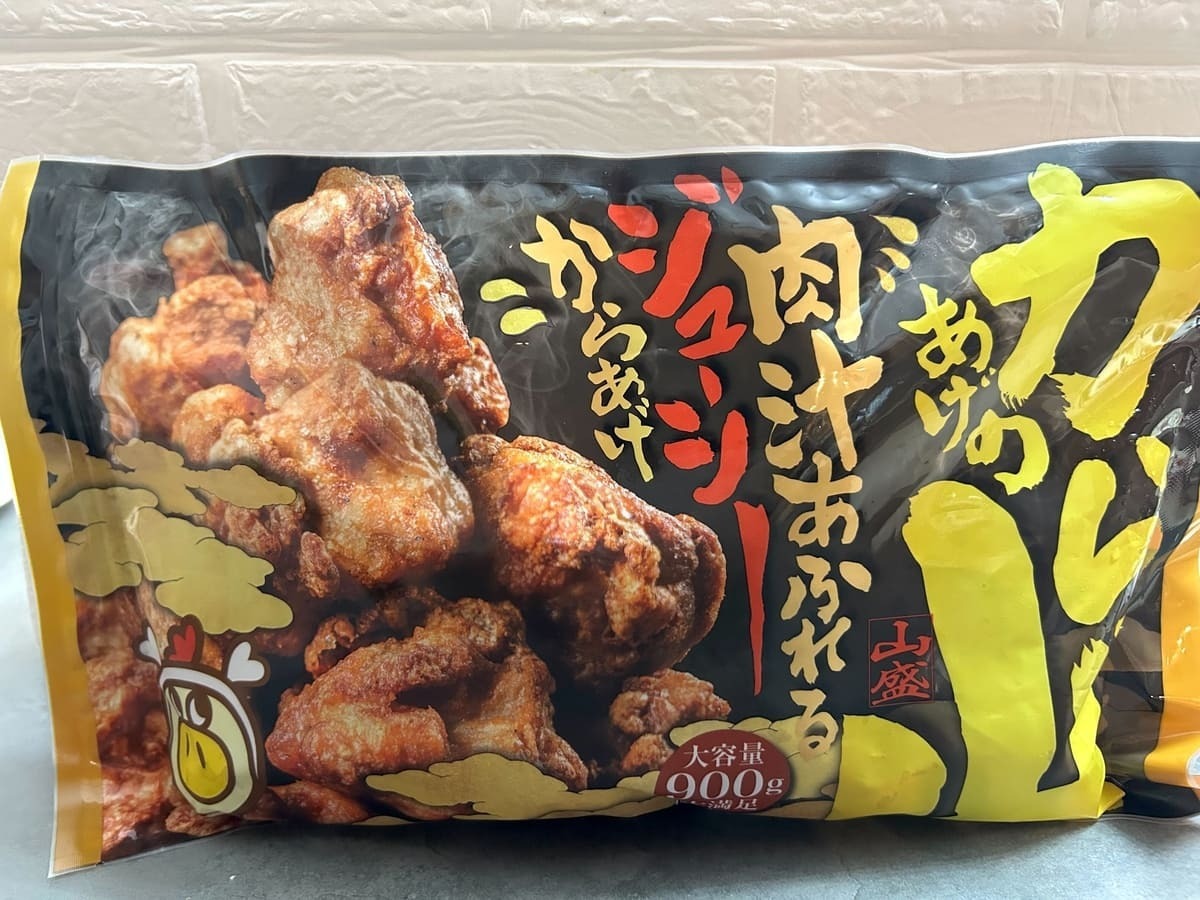 とにかく袋が大きくて重い!袋の大きさは約40cm。商品名通りに大ボリュームのからあげの山。