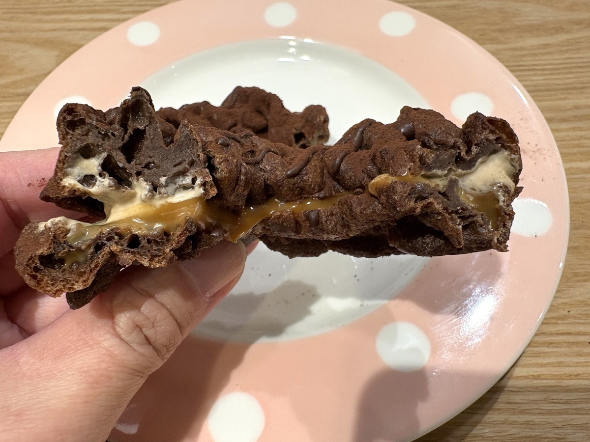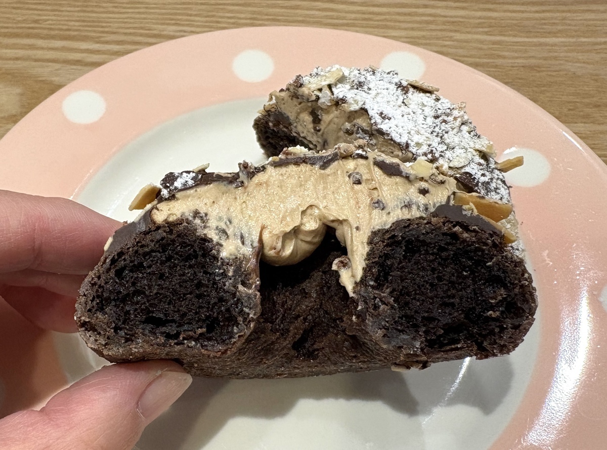 口に入れると滑らかなクリームとしっとりしたショコラドーナツ生地が絶妙なハーモニーを奏でます。