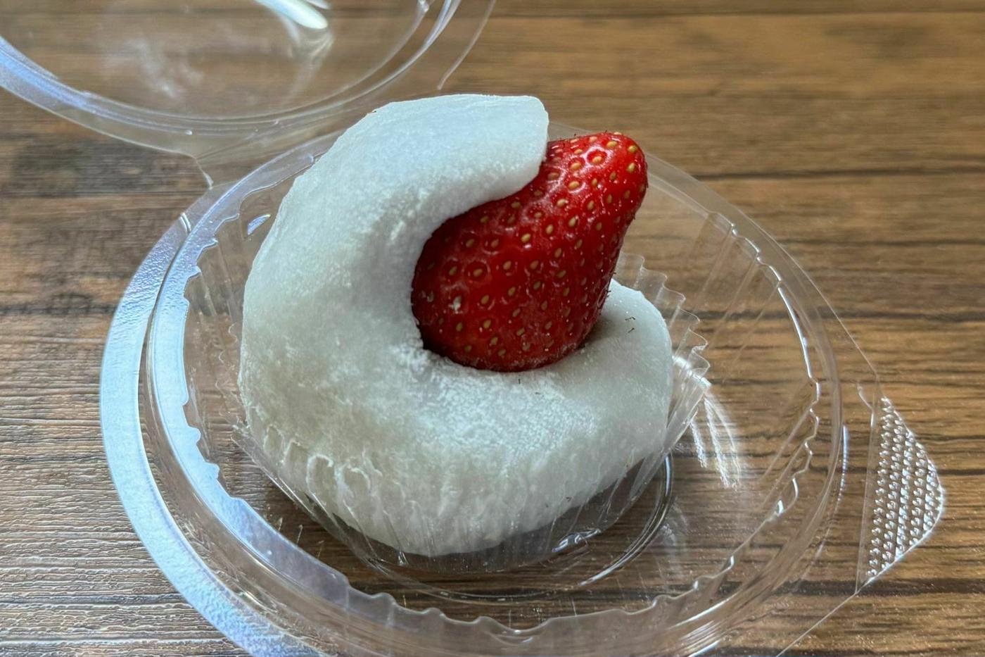 苺が生地に覆われた一般的ないちご大福と比べて、苺が表に出ている分よりはっきりといちご感を味わえます。