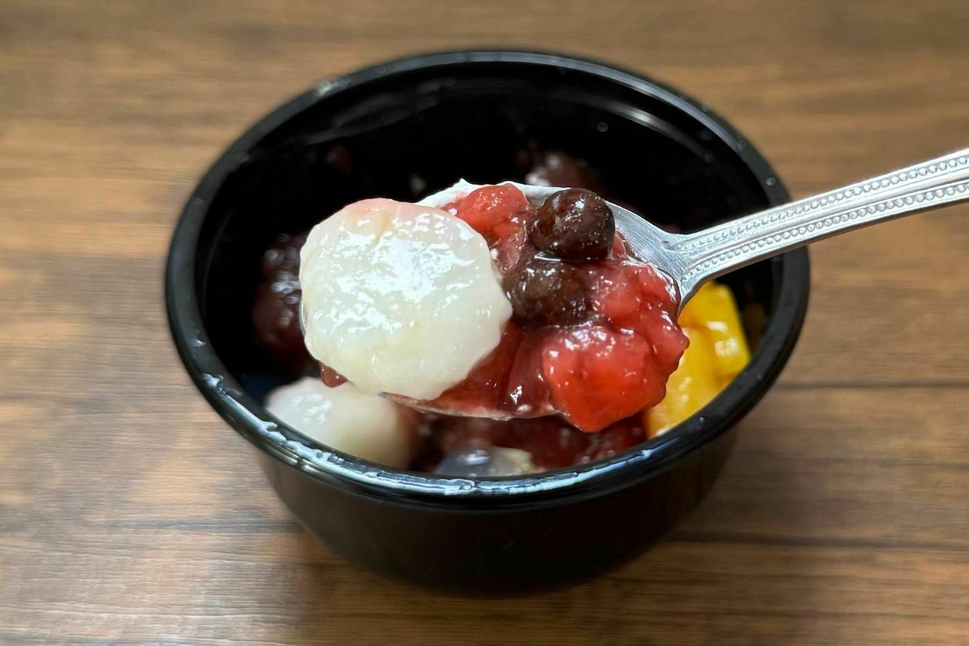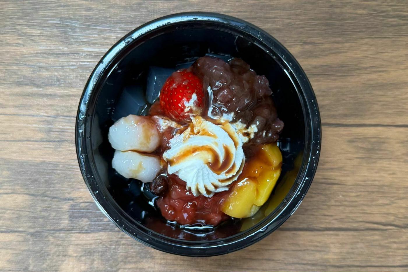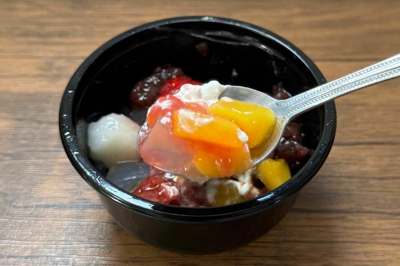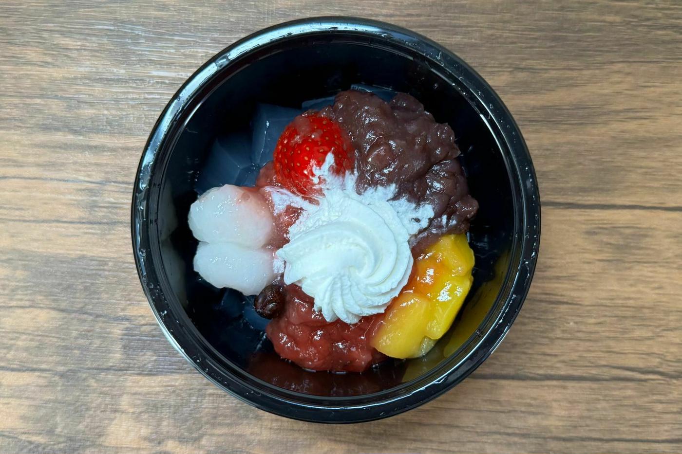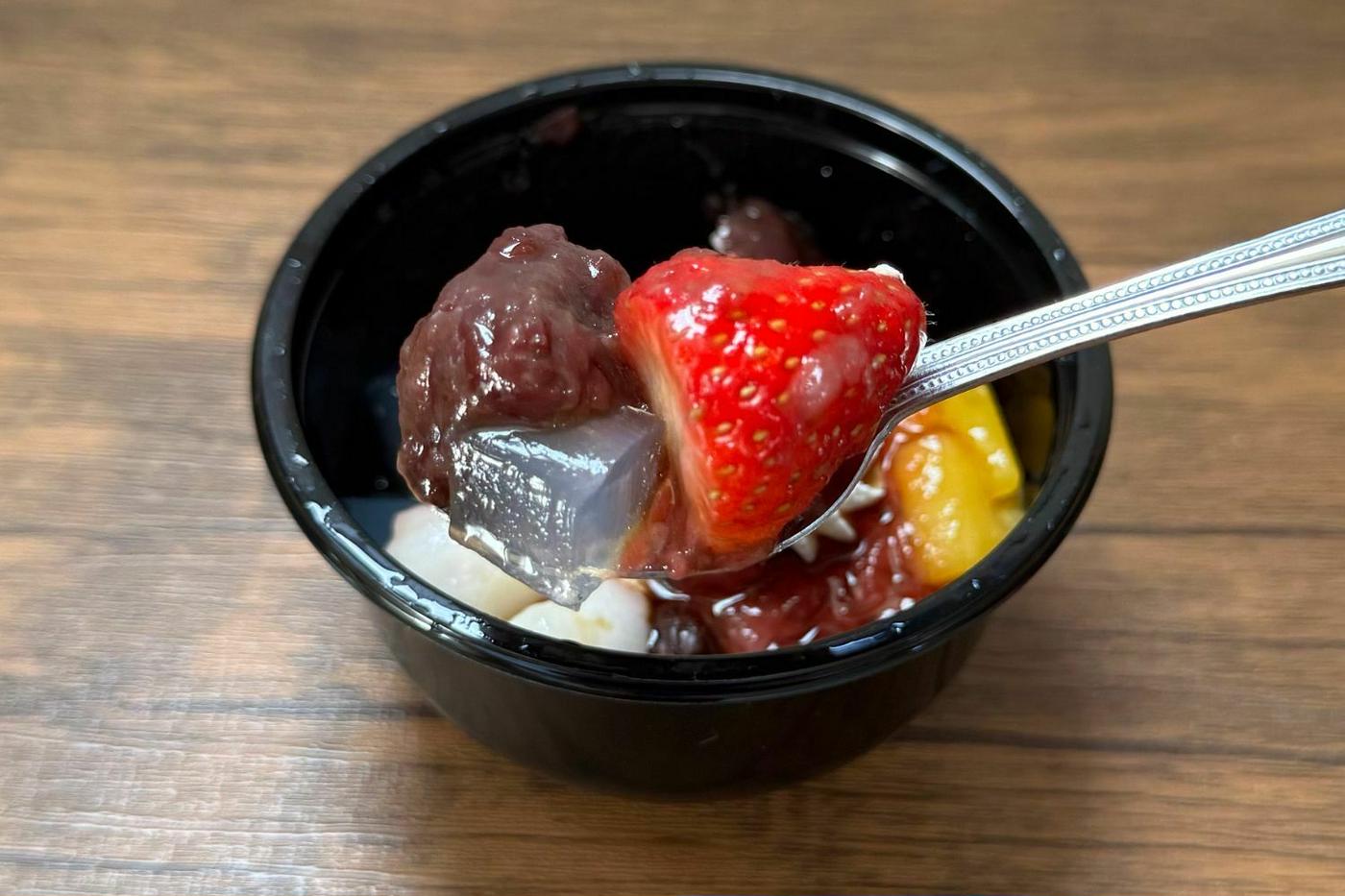 シロップ漬けのマンゴーも入っており、和風のクリームあんみつながら、フルーティーな味わいがしっかりと楽しめます。