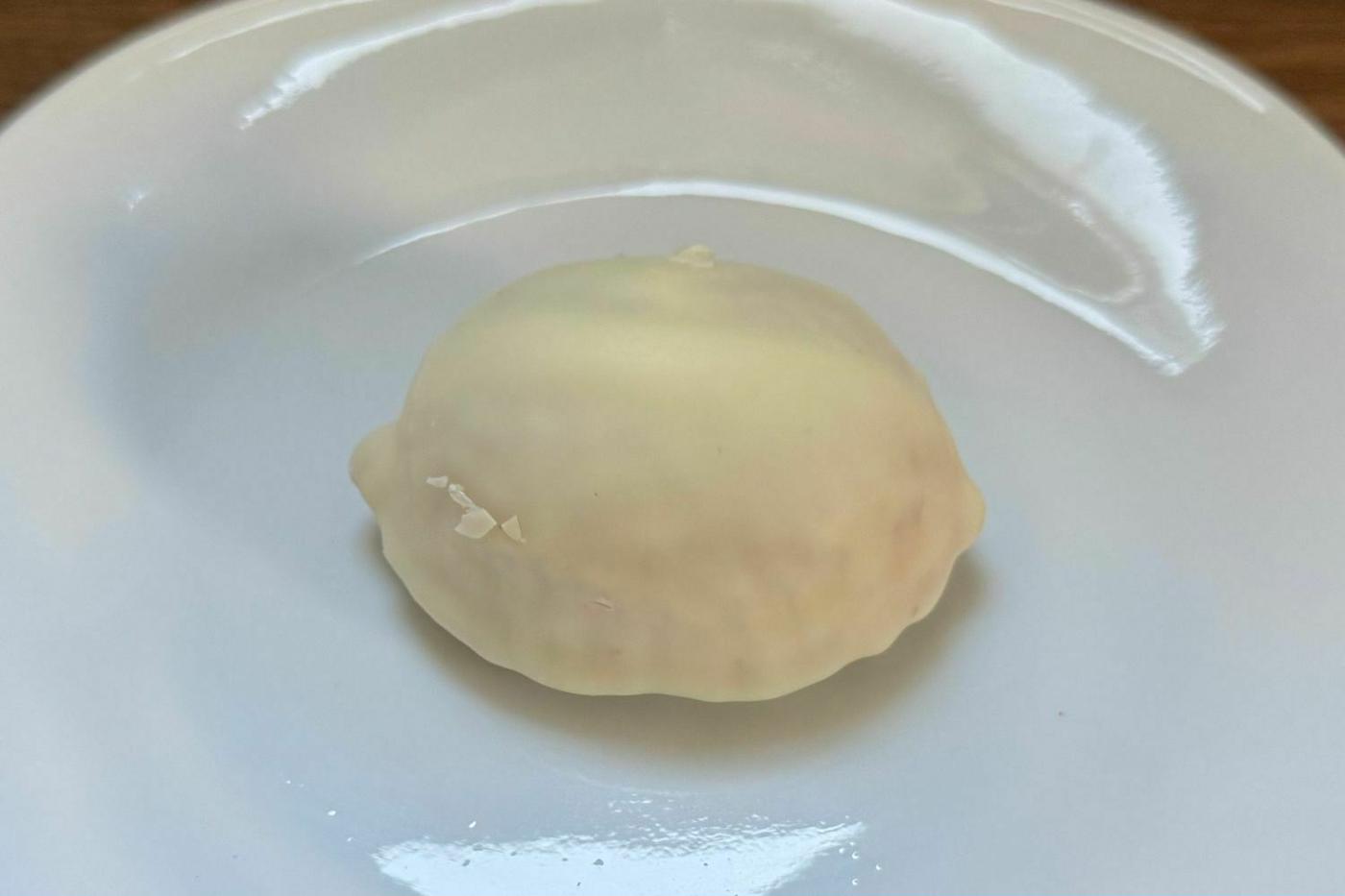 実際に食べてみると、表面にコーティングされたホワイトチョコレートは甘すぎない上品な甘さで、想像よりも厚みがありました!