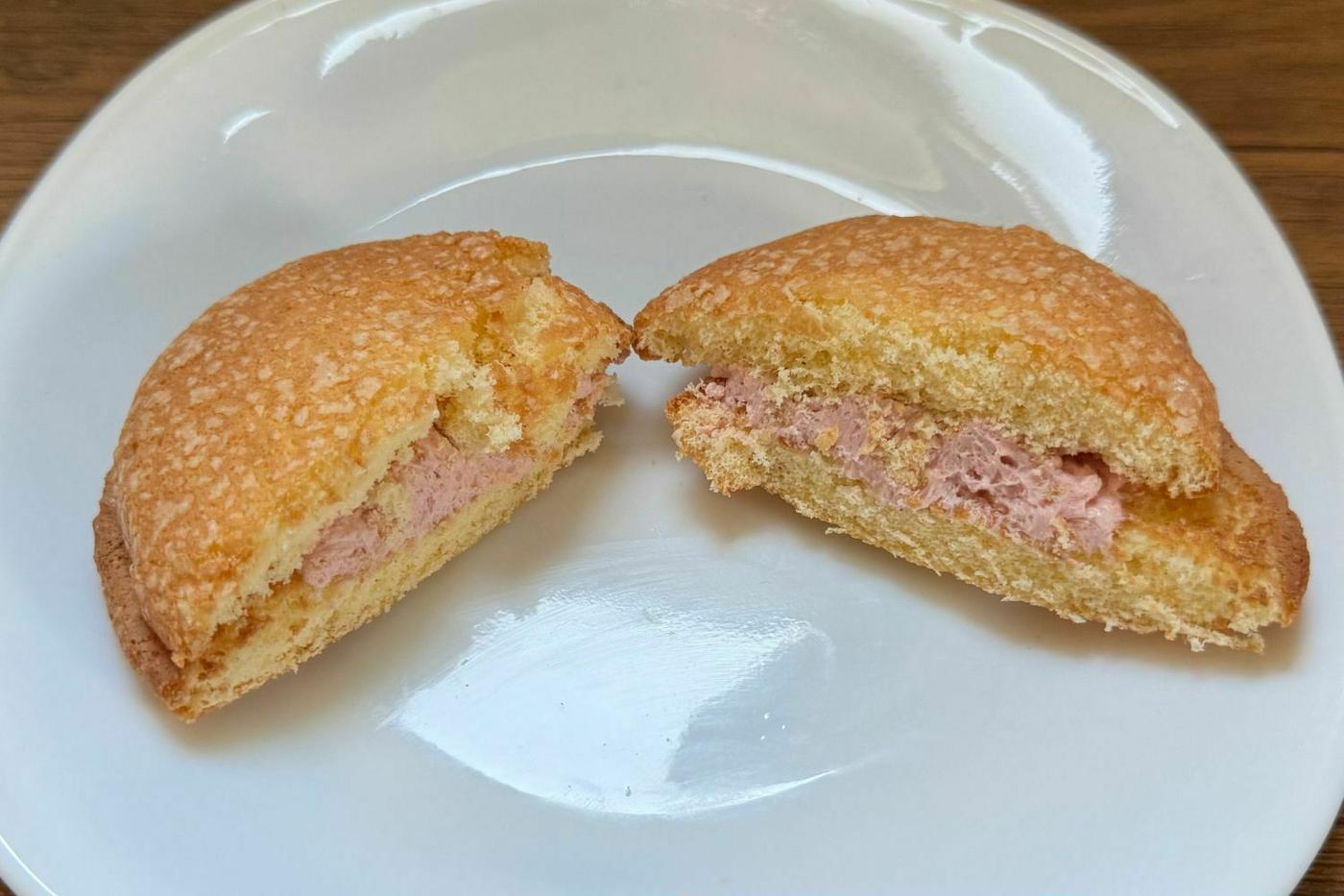 割ってみると中には、たっぷりと苺のクリームが入っていました!