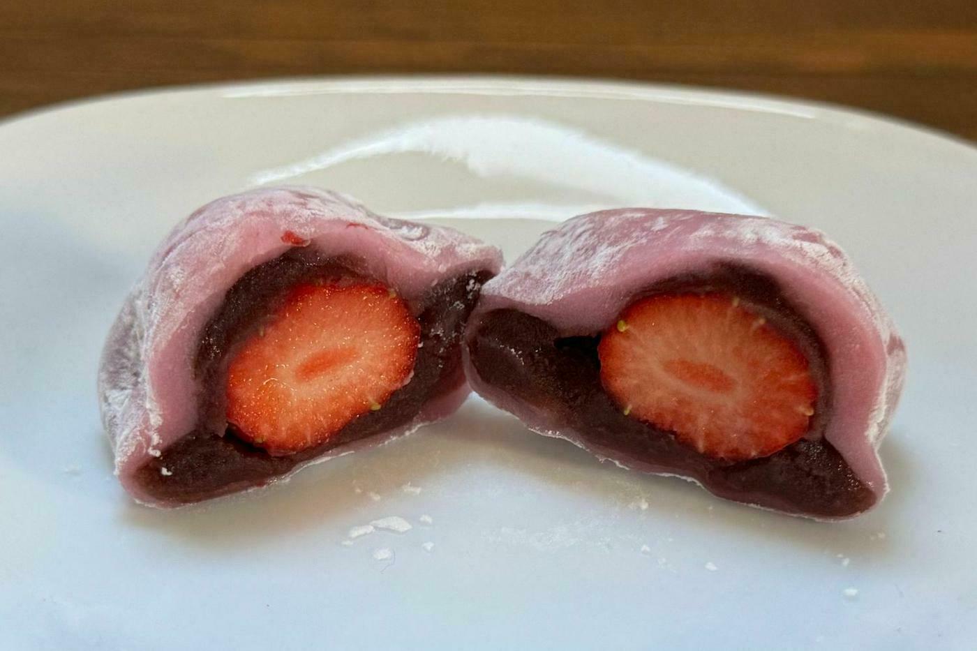 お餅のやわらかな食感、みずみずしい苺、小豆の風味がほのかに香るクリームが一体となった、3つの味わいが調和する至福の一品です♪