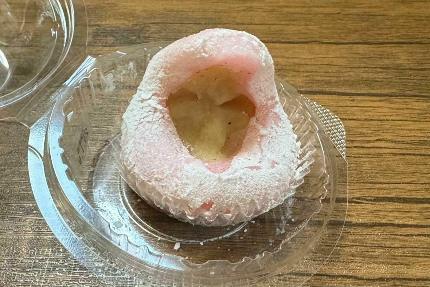 苺が生地に覆われた一般的なものと異なり、表に出ている分、よりはっきりと苺感を味わうことができます。