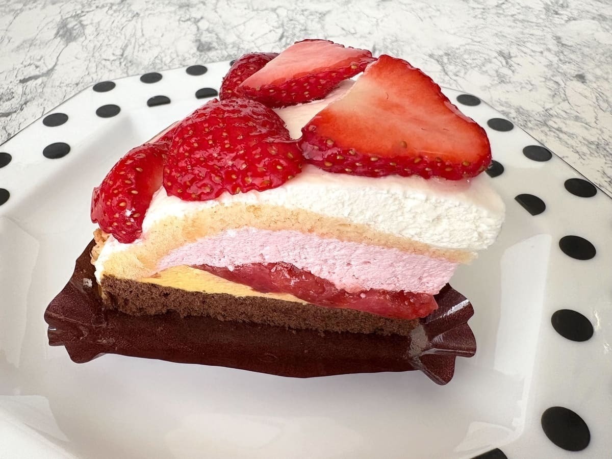 一口食べると、しっとりとしたスポンジとコクのあるカスタード入りホイップにより、王道のショートケーキのような親しみやすい風味が広がります。