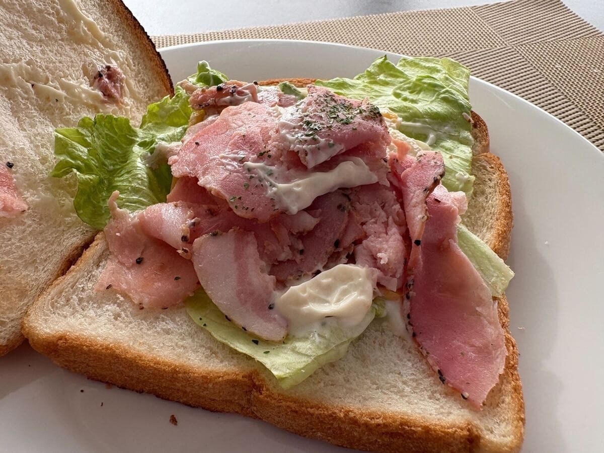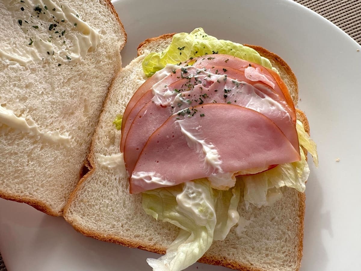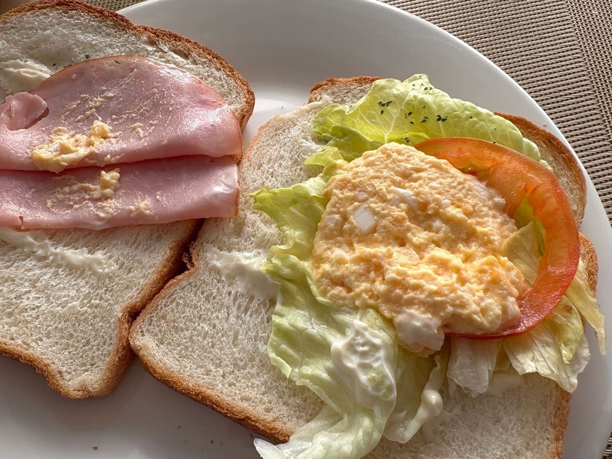 公式でも「朝食の王道食材」と謳っている通り、ハム、タマゴサラダ、トマト、レタスという間違いない組み合わせです。