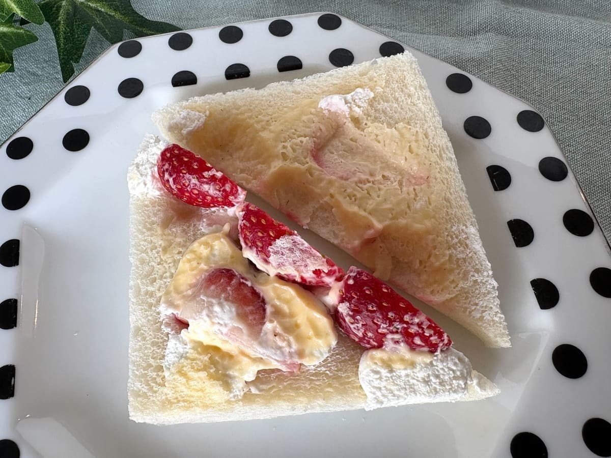 ローソンのいちごサンドの特徴は、セブン同様ホイップクリームとカスタードクリームが入っているところ。
