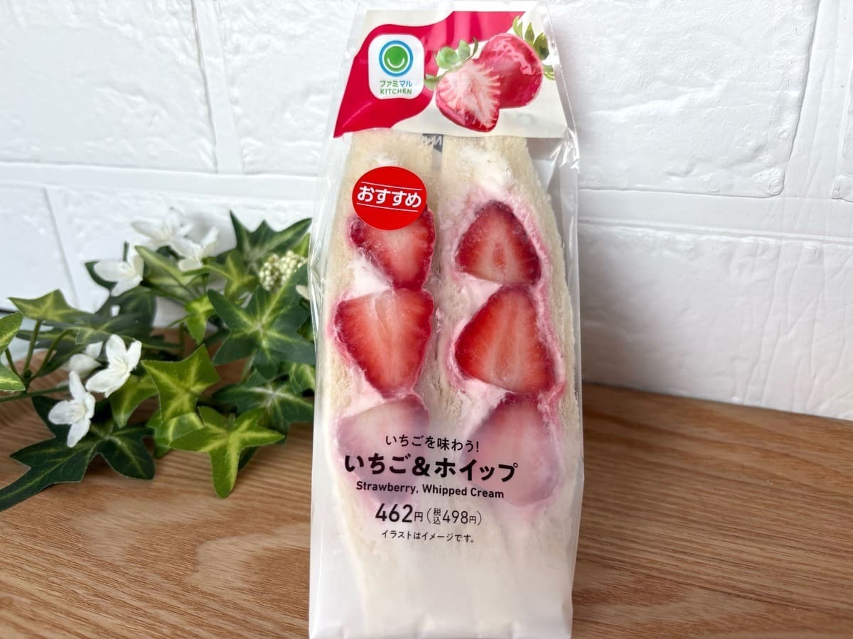 次に紹介するのはファミリーマートの「いちご&ホイップ」です。価格は税込498円とセブンよりもやや安め。