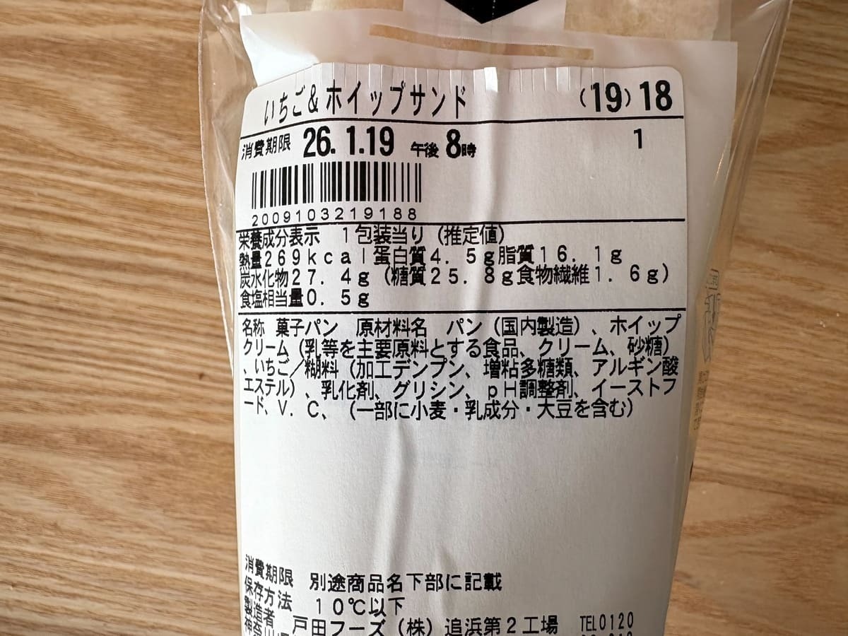 ファミマのいちごサンドは「いちご&ホイップ」というシンプルな商品名の通り、ホイップクリームのみを使用しているのが特徴。