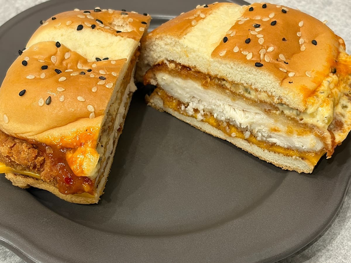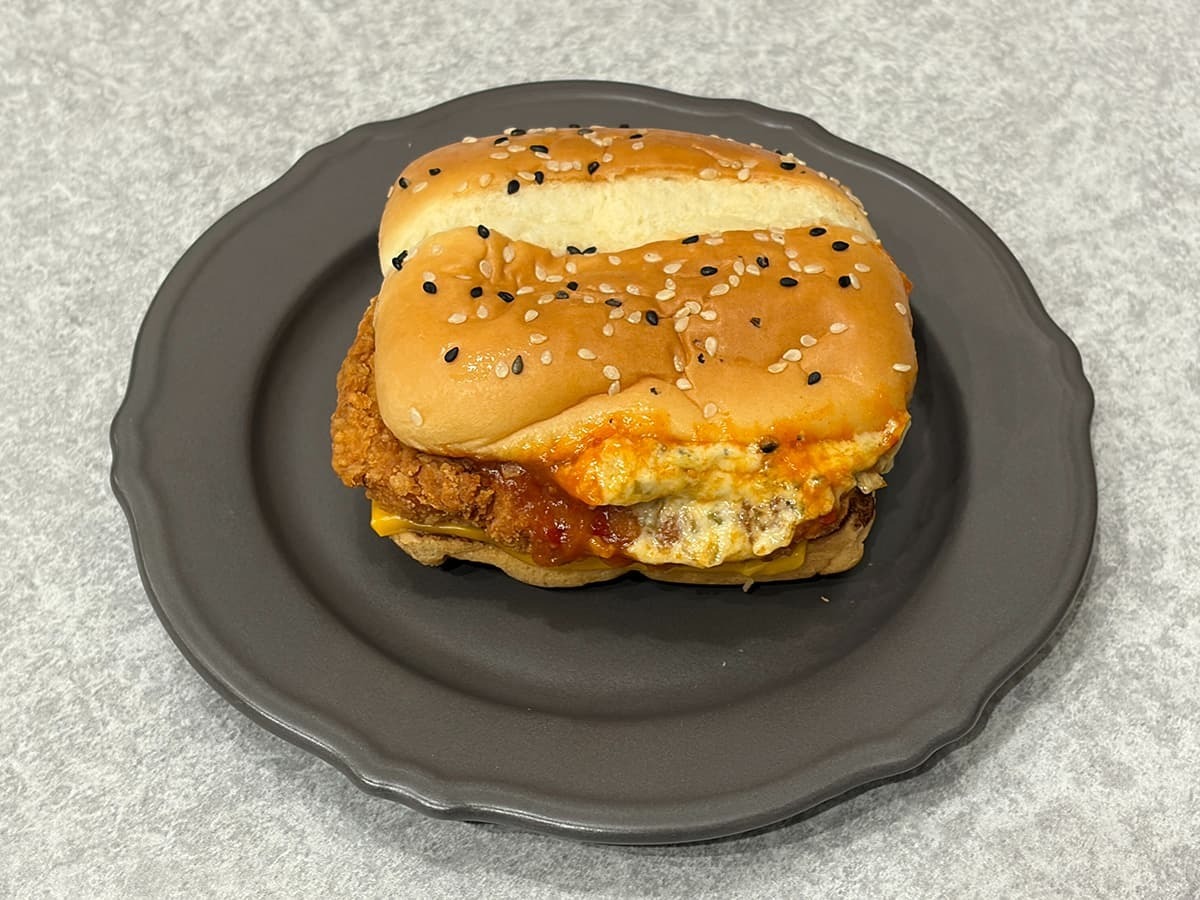 チキンパティはサックサクに仕上げられており、一口食べるごとに感じるバンズのふわふわ感とチキンパティのサクサク感のコントラストも魅力!2種類のソースも絡み合い、パンチのある味わいでした!