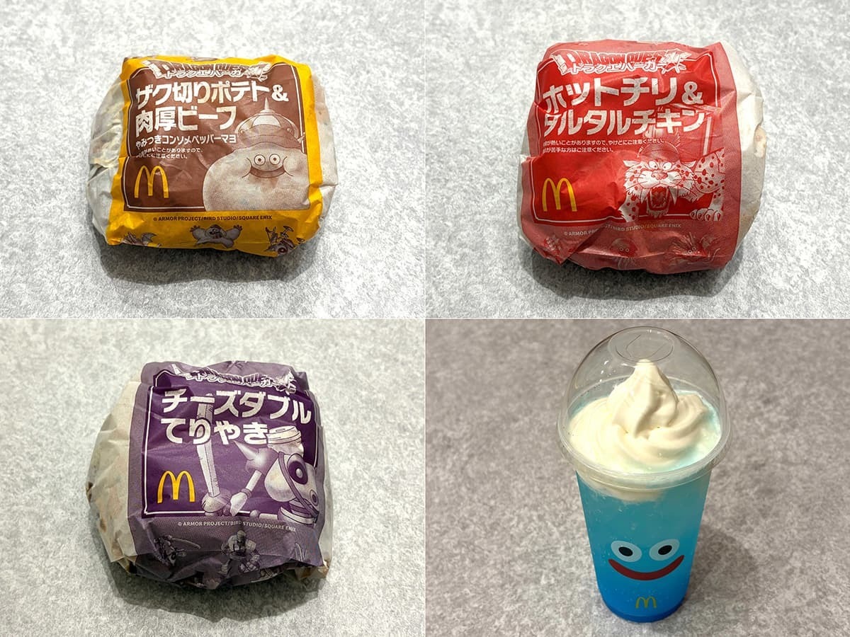 マクドナルドとドラゴンクエストのコラボメニューは全5種類あります。今回はバーガーを中心に4種類購入してみましたので、早速実食レビューを行っていきます!