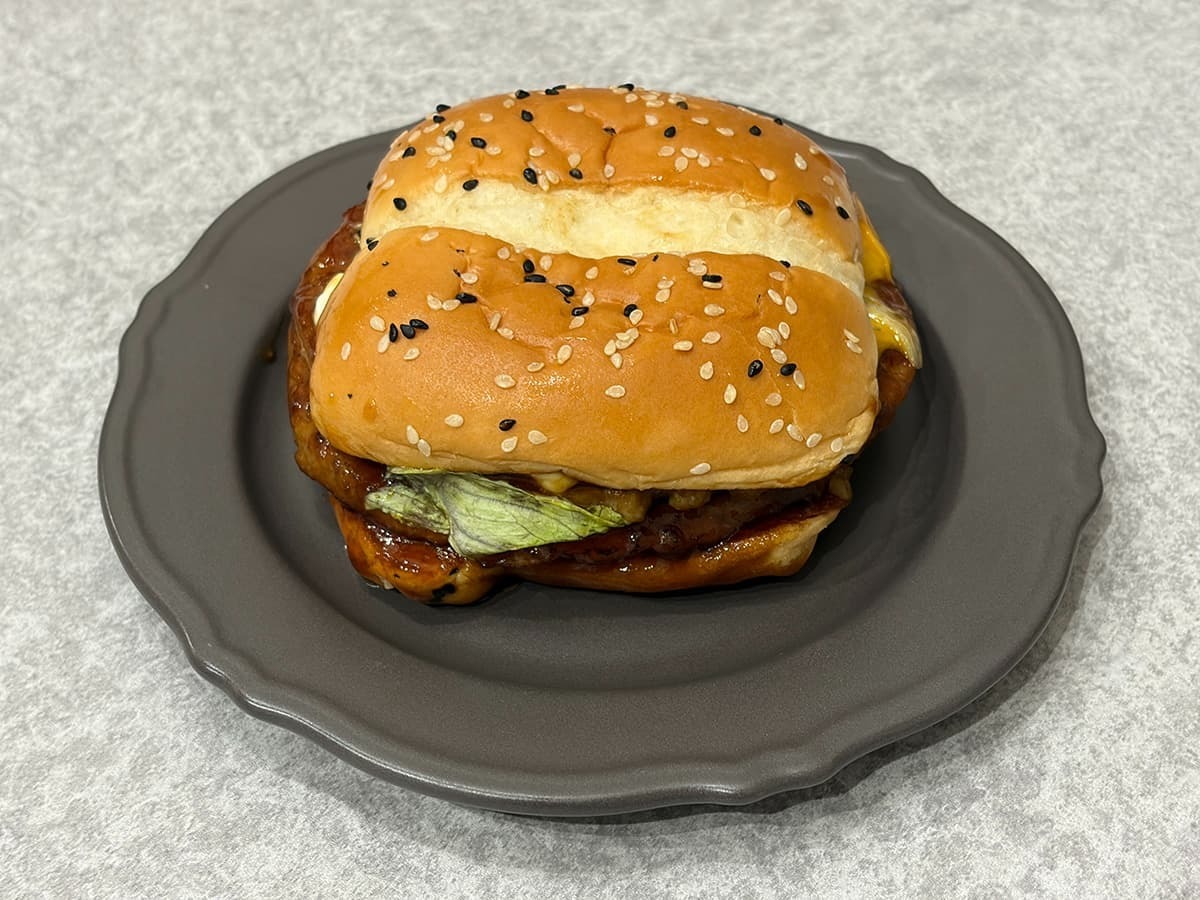 2枚のポークパティを使用したボリューム満点の「チーズダブルてりやき」をご紹介します。