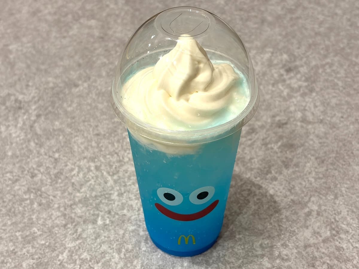 カップの表面にスライムの顔が描かれた「マックフロート® 爽やかヨーグルトソーダ味」をご紹介します。