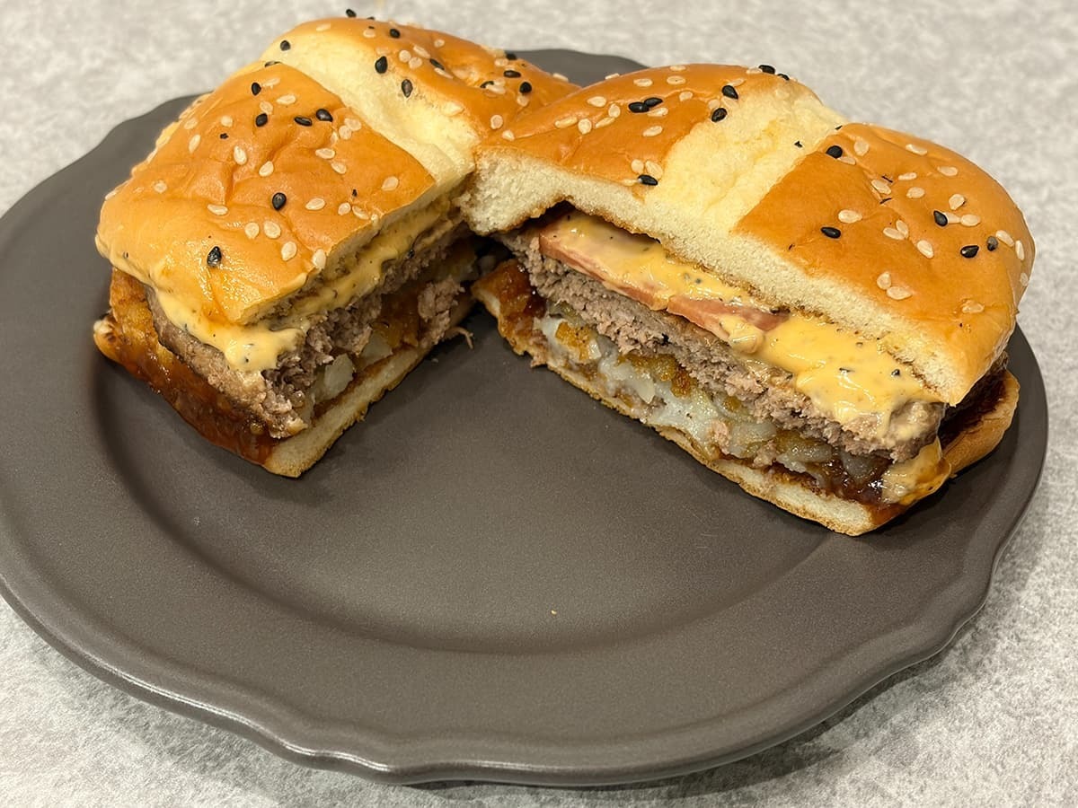実食してみた感想としては、2枚のポークパティにより圧倒的な肉感を味わえて美味しい!肉パティを1枚使用した通常のバーガーよりも満足感が高く、肉感を存分に楽しみたい方にイチオシです!