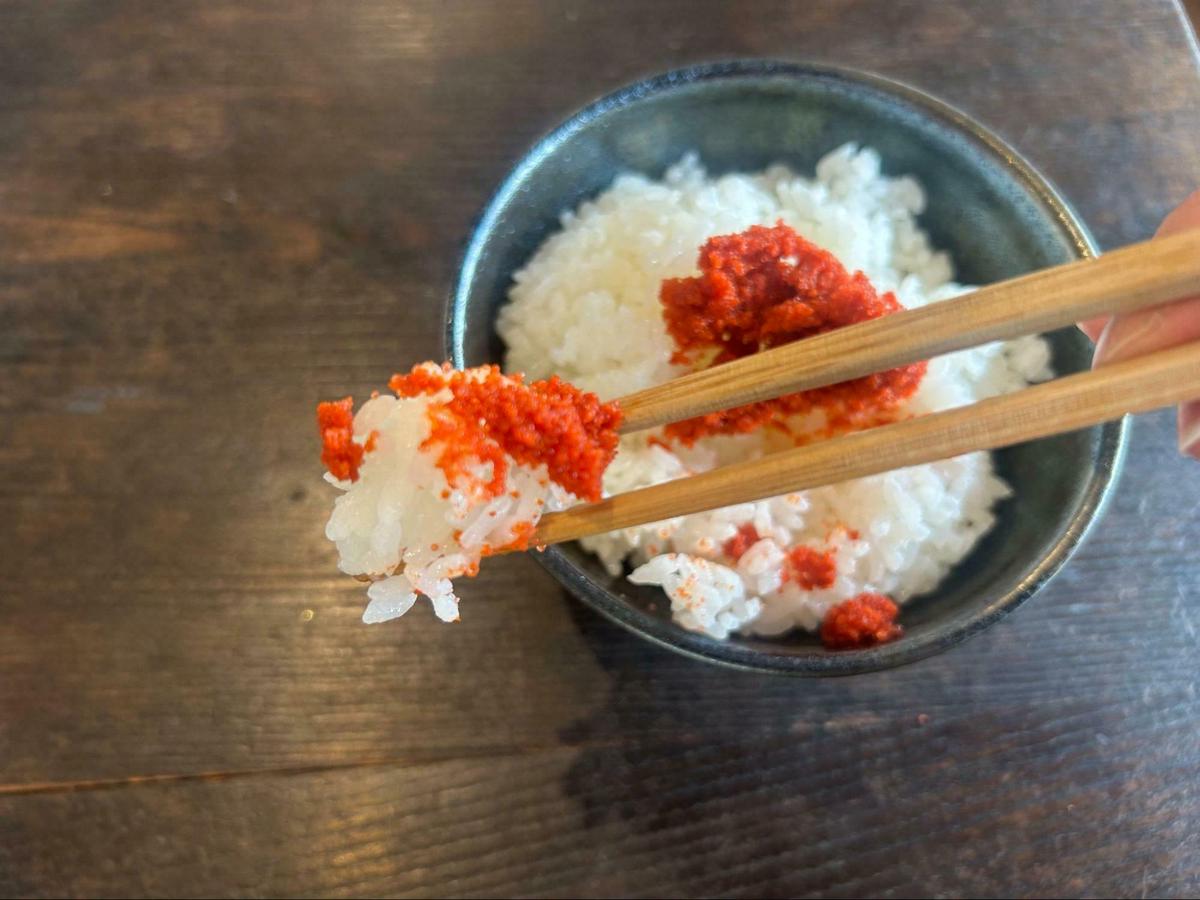 しかし、不思議なことに、その激痛(笑)の後にやってくるのが、明太子本来の濃厚なコク。辛い、これは白ごはんと一緒に食べたい!と炊きたてのごはんと一緒に食べてみます。