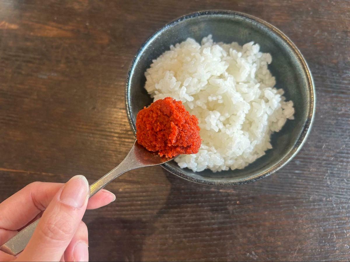 ものは試し!スプーンですくって味見を。 口に入れた瞬間、最初は明太子の粒々とした食感と、出汁の旨味が広がります。が、1秒後・・・。