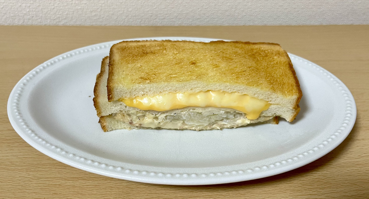 チーズが入っていると「重たくて途中で飽きちゃうかも?」と不安に思う方もいるかもしれませんが、このホットサンドは重すぎず、玉ねぎの爽やかさが効いているのか、気づけば1人でペロリと完食していました。