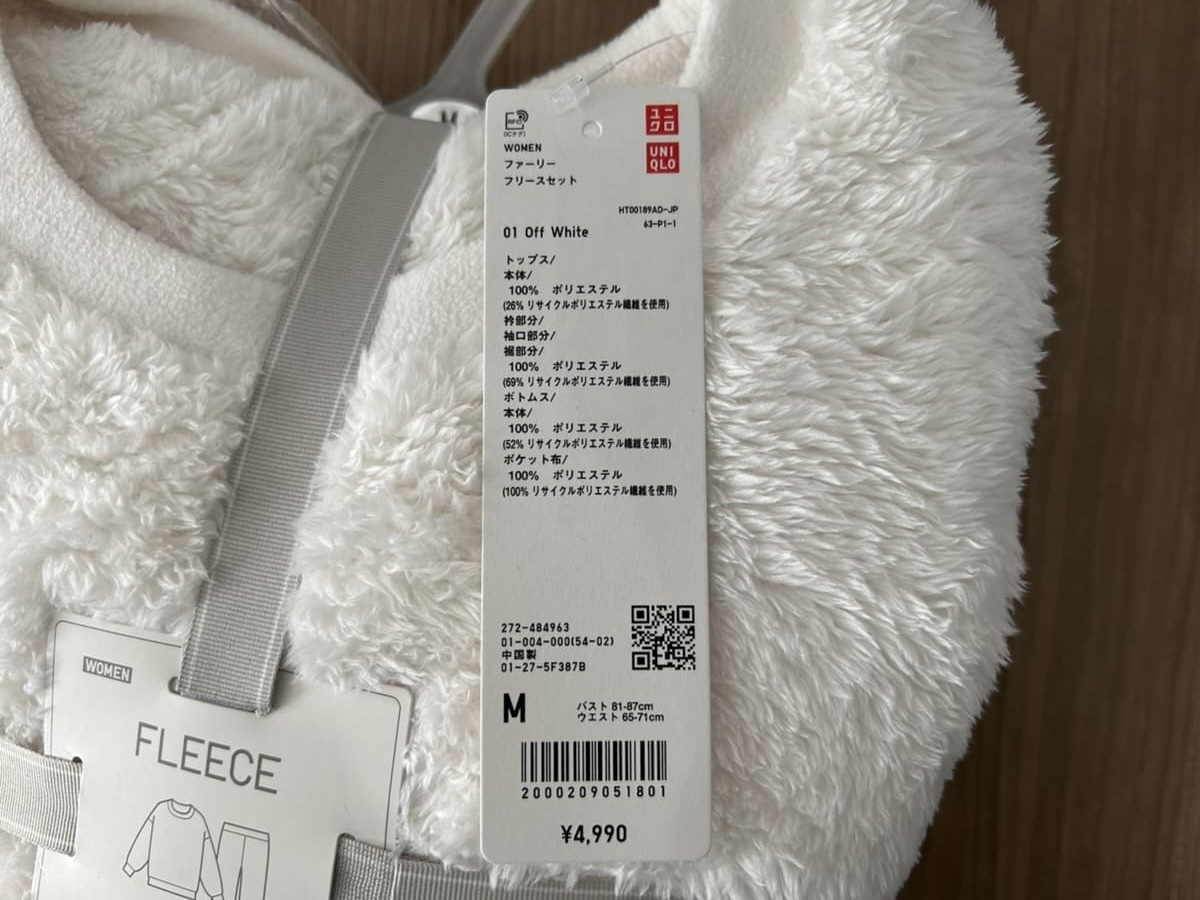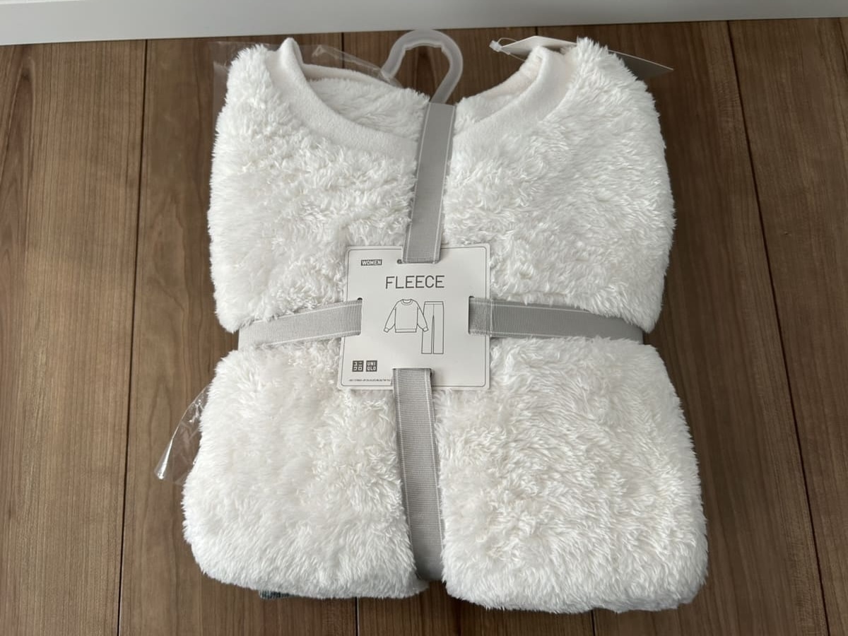 毛足が長いトップスと、色違いのボトムスという珍しいセットです。 カラーはオフホワイト、ピンク、パープルの3色展開で、筆者はオフホワイトを購入しました。