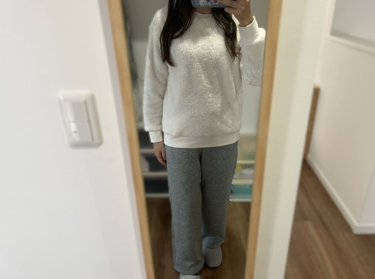 ふわふわトップス×裏起毛ボトムスの最強コンビ