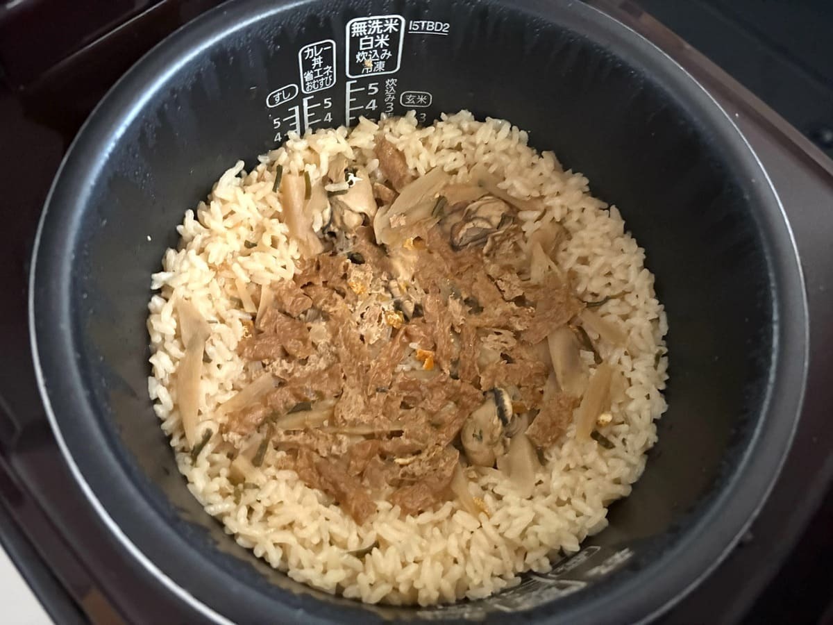 炊き上がったごはんを口に運ぶと、牡蠣特有の磯の風味が鼻を抜け、海鮮好きにはたまらない味わい。