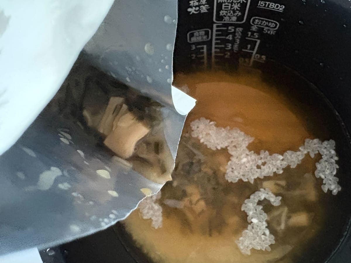 こちらは研いだお米2合に合わせて炊くタイプの商品で、だしの香りが食欲をそそる人気商品です。