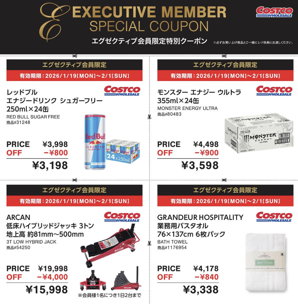 【ゴールドスターメンバー向け】1/26~2/1 コストコ最新セール・割引情報